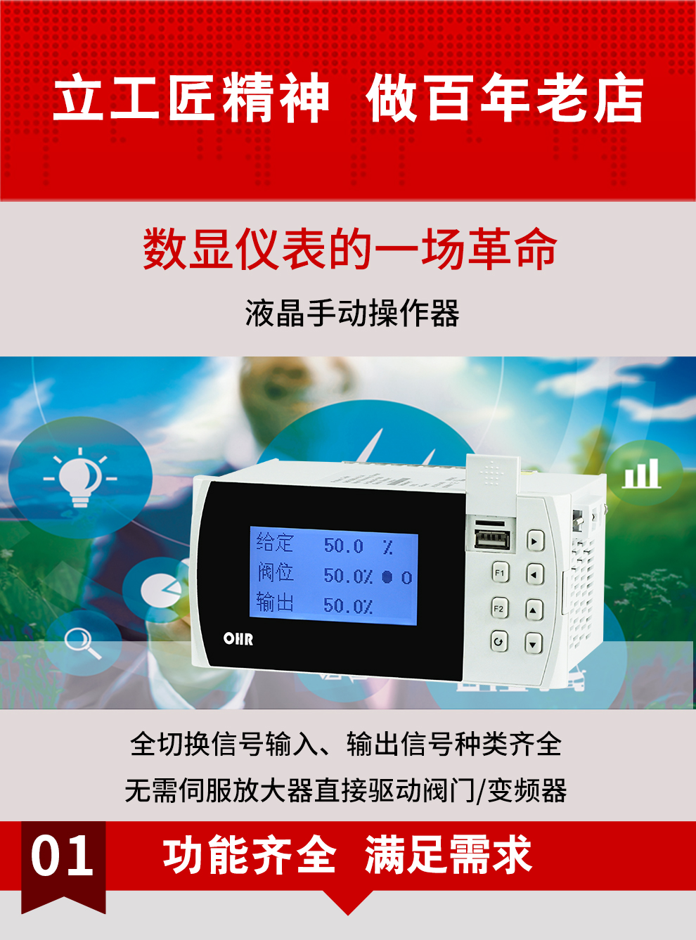 虹潤公司是專業(yè)生產智能手操器的國家專精特新“小巨人”企業(yè),生產的液晶手動操作器,具有全切換信號輸入,通道之間相互隔離,手自動無擾動切換配上位機管理軟件等特點。產品獲得閥門自動手動無擾動操作控制方法及裝置、模糊PID控制儀及控制方法、移相觸發(fā)控制器等3項國家標準,主持起草工業(yè)過程控制系統(tǒng)用模擬輸入兩位或多位輸出儀表、流程工業(yè)中電氣/儀表和控制系統(tǒng)的試車等2項國家標準,以及通信系統(tǒng)多通道數(shù)據(jù)采集控制終端規(guī)范軍用標準,參與國際5G標準制定,取得手動操作器等3項相關軟件著作權。產品廣泛應用于電力、石化、冶金、化工、造紙、食品、輕工、制藥、熱處理、水處理、機械配套等各種工業(yè)現(xiàn)場。