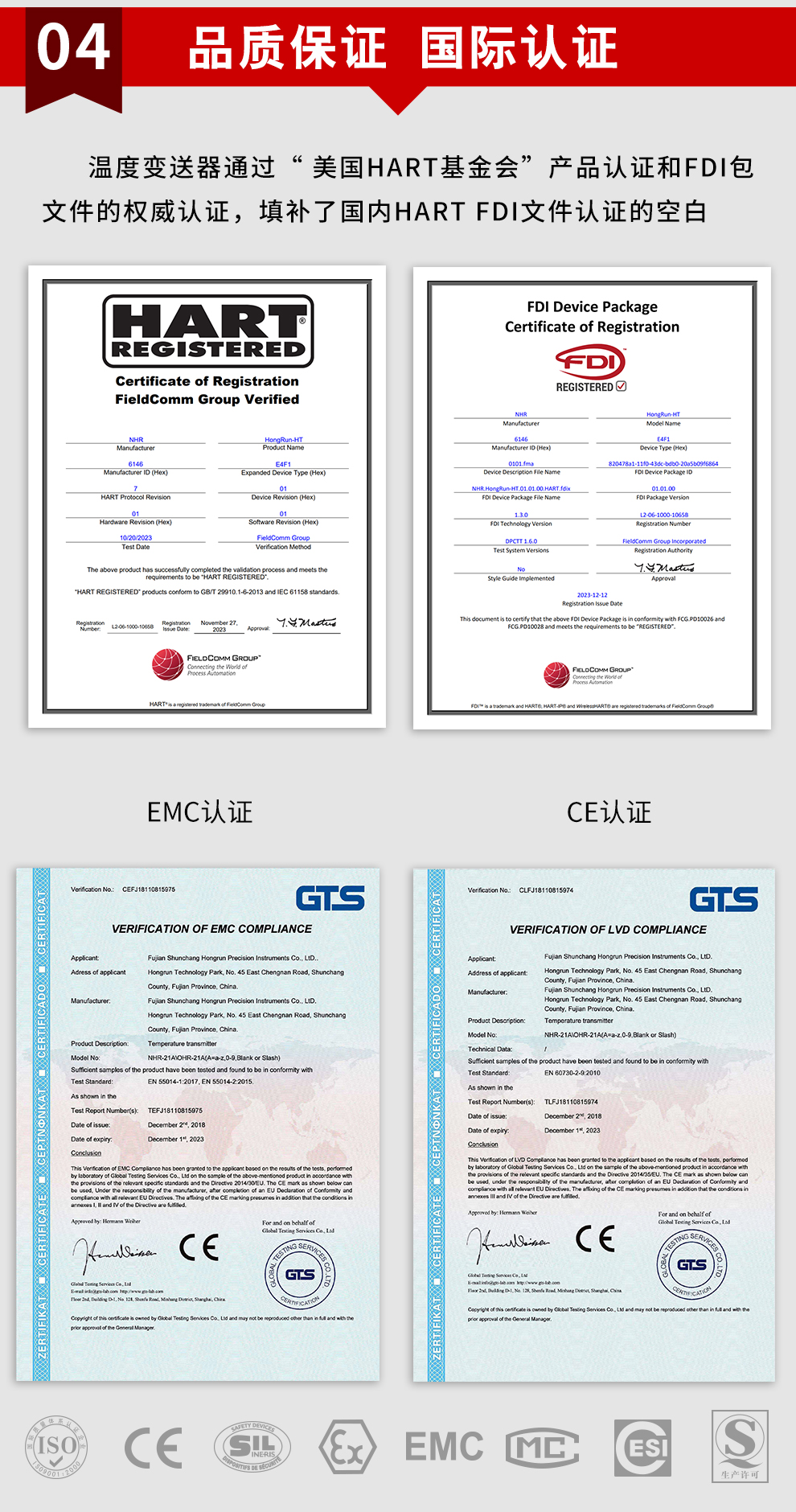 虹潤公司是專業生產溫度變送器的國家專精特新“小巨人”企業。生產的現場顯示隔離溫度變送器,具有可修改輸入信號類型,測量精度高,穩定性好,帶HART或RS485通訊計等特點。該產品不僅通過德國萊茵 CE 認證與 SIL 功能安全認證,還獲得具備減震抗干擾能力的溫度變送器、信號隔離器、一種二端子模塊、無源信號隔離器等3項國家發明專利。主持起草物聯網智能溫度儀表、現場設備工具(FDT)接口規范、工業過程測量和控制系統用溫度變送器等3項國家標準,以及通信系統多通道數據采集控制終端規范軍用標準。參與國際5G標準制定,取得高精度溫度變送器等3項相關軟件著作權。產品廣泛應用于石油、化工、電力、冶金、制藥、食品、水處理等各種工業領域。
